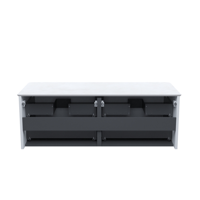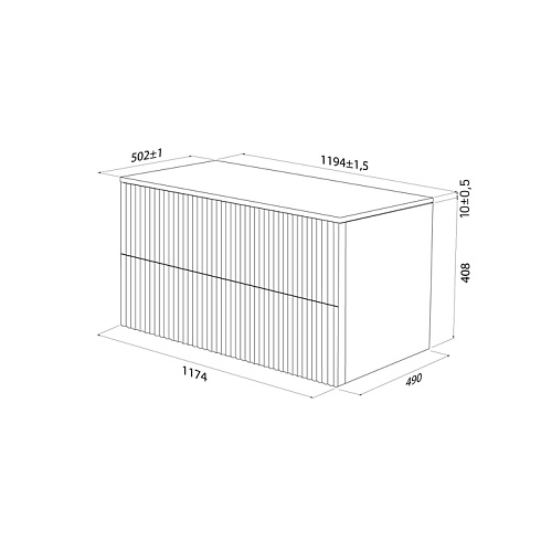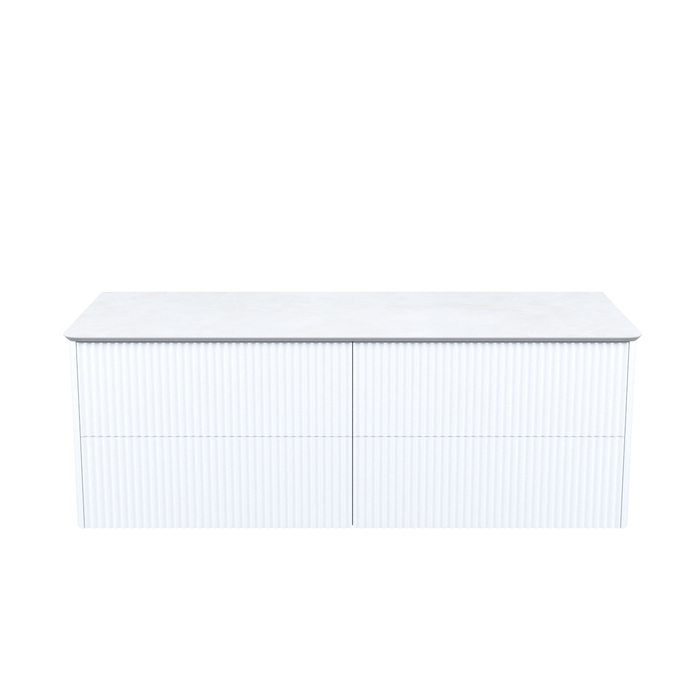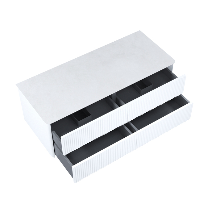 Большая подвесная тумба для ванной комнаты Aiger в классическом белом цвете с выдвижными ящиками и столешницей из керамогранита – красивый лаконичный дизайн вне времени с трендовой вертикальной фрезеровкой.