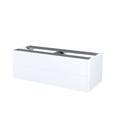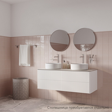 Подвесной пенал для ванной в классическом белом цвете с трендовой вертикальной фрезеровкой дополняет коллекцию мебели Aiger.