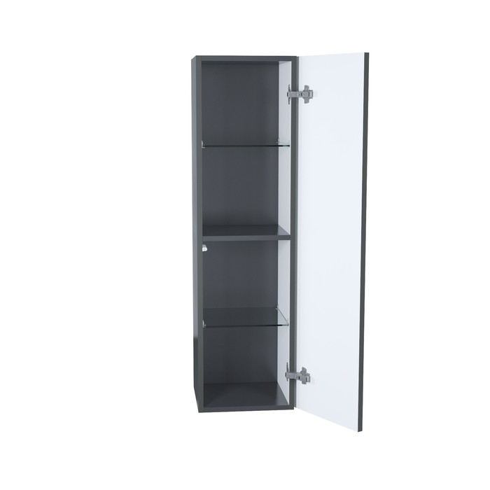 Подвесной пенал для ванной комнаты Bild – красивый дизайн с вертикальной фрезеровкой в сочетании с популярным темно-серым цветом, удобством и практичностью. Универсальная ориентация: пенал можно подвесить так, чтобы дверки открывались в удобную вам сторону (пенал можно перевернуть на 180 градусов, при этом перевешивать дверцы не нужно).