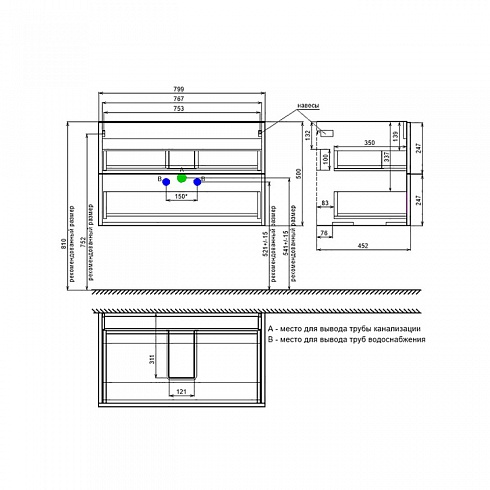 - Материал фасадов – МДФ с покрытием ПВХ-пленкой. Она разработана для использования в помещениях с высокой влажностью и сохранит первоначальный вид мебели надолго (при должном уходе). Материал боковин – ЛДСП.