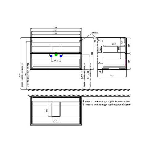 • Материал фасадов – МДФ с покрытием ПВХ-пленкой. Она разработана для использования в помещениях с высокой влажностью и сохранит первоначальный вид мебели надолго (при должном уходе). Материал боковин – МДФ.