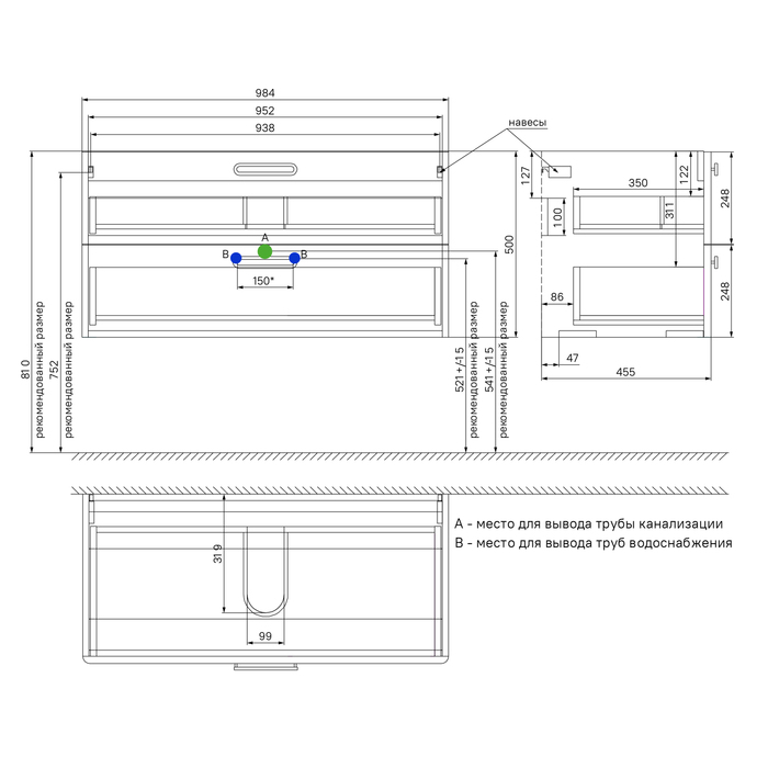 • Сифон приобретается отдельно. Подходят сифоны IDDIS® арт. 900BVG0010VD, 902BV750VD, 900B000010VD (выпуск приобретается отдельно).