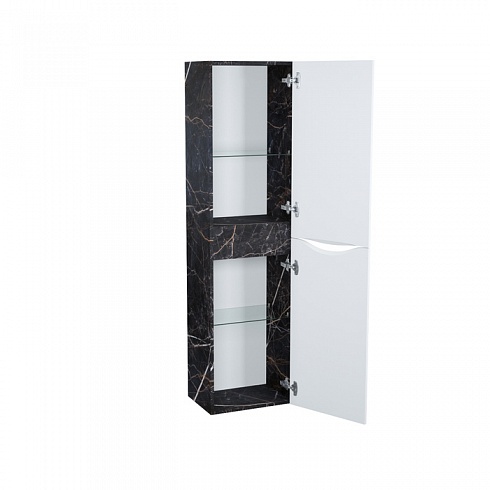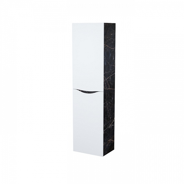 Стильный подвесной пенал Cloud из влагостойкой ЛДСП, где гармонично сочетаются боковины цвета черного мрамора и матовые белые фасады с интегрированными ручками. Обновление популярной коллекции мебели Cloud и украшение современной ванной в стиле лофт.