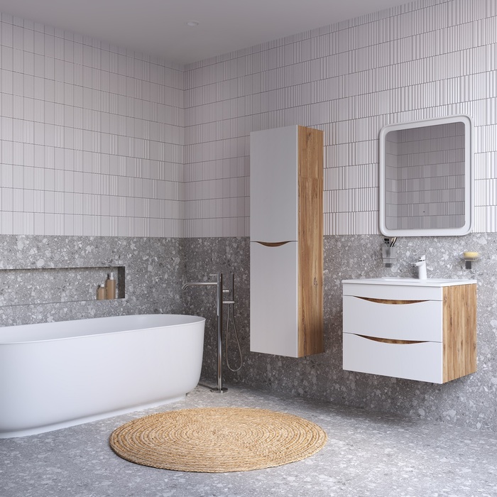 • Подвесная конструкция тумбы делает ее воздушной и упрощает процесс уборки в ванной.