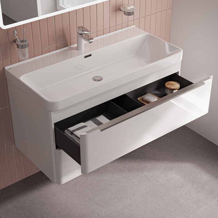 Вместительная подвесная тумба Cloud X с большим удобным умывальником и тонкими ручками – стильное решение для современной ванной и новое прочтение популярной серии Cloud.