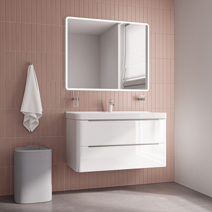 • Материал фасадов и боковин – МДФ с глянцевой эмалью. Такое качественное исполнение обеспечит долгий срок службы мебели во влажном помещении ванной (при соблюдении рекомендаций по уходу).