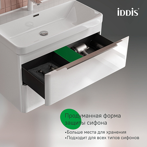 Сифон приобретается отдельно. Подходят сифоны IDDIS® арт. 900BVG0010VD, 902BV750VD, 900B000010VD (выпуск приобретается отдельно).