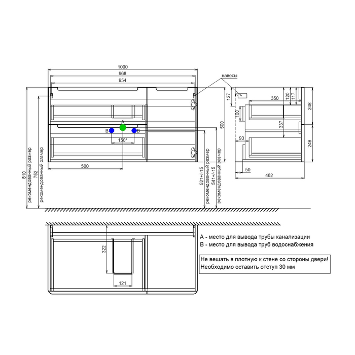 • Два выдвижных ящика закрываются плавно и бесшумно благодаря высококачественным скрытым направляющим с доводчиками немецкого производства.