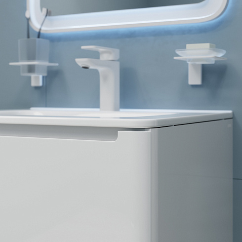 Компактная подвесная тумба с плоским умывальником Edifice универсального белого цвета – воплощение современного минимализма. Мягкие линии корпуса в сочетании с удобными интегрированными ручками выглядят свежо и актуально. Смотрится аккуратно, легко и не усложняет процесс уборки в ванной благодаря подвесной конструкции.