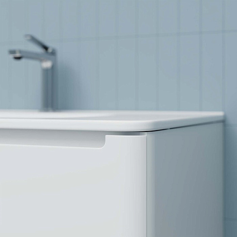 одвесная тумба с плоским умывальником Edifice универсального белого цвета – воплощение современного минимализма. Мягкие линии корпуса в сочетании с удобными интегрированными ручками выглядят свежо и актуально. Смотрится аккуратно, легко и не усложняет процесс уборки в ванной благодаря подвесной конструкции.