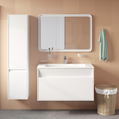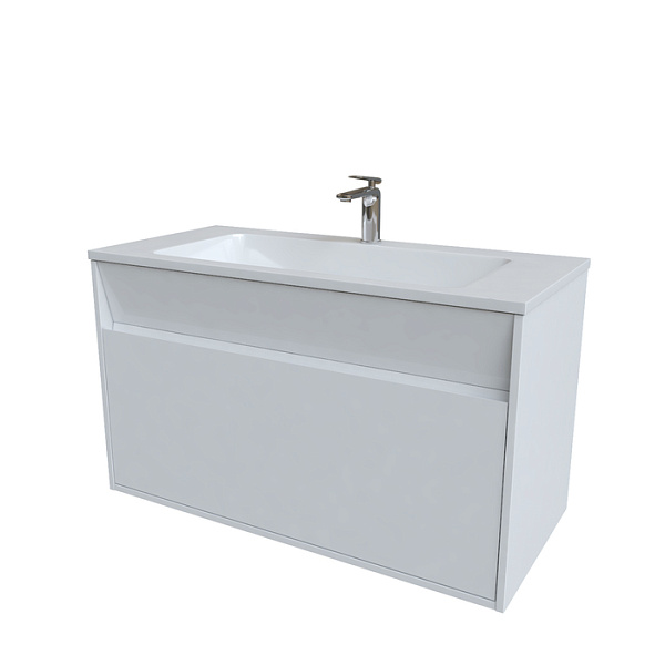 Мебельная коллекция Esper – выбор тех, кто ценит одновременно простые и продуманные решения. Наклонный элемент фасада придает тумбе Esper интересный внешний вид. Интегрированная ручка обеспечивает дополнительный комфорт и безопасность. В комплекте умывальник в современном дизайне (арт. 4501000i28) и подходящий к нему сифон с сеточкой. Большая чаша умывальника удобна и для гигиенических, и для хозяйственных нужд.