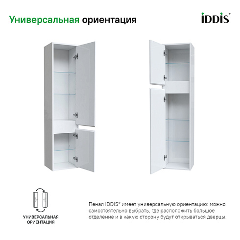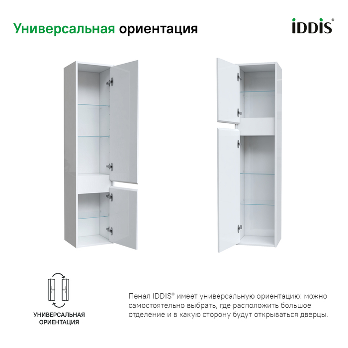 • Благодаря профессиональной мебельной фурнитуре дверки пенала IDDIS® закрываются плавно и бесшумно.