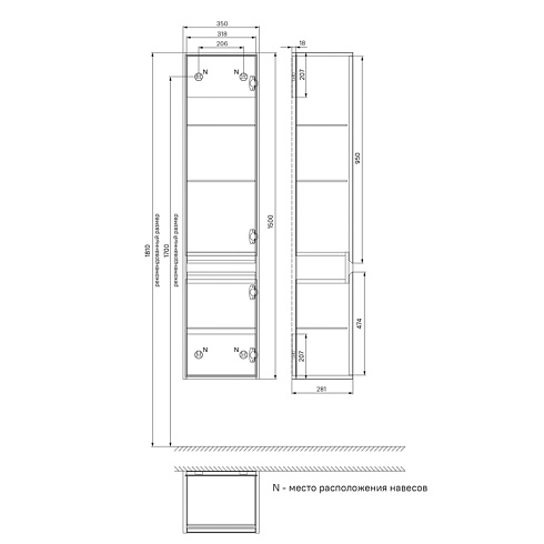 - Размер изделия, мм. 350*281*1500