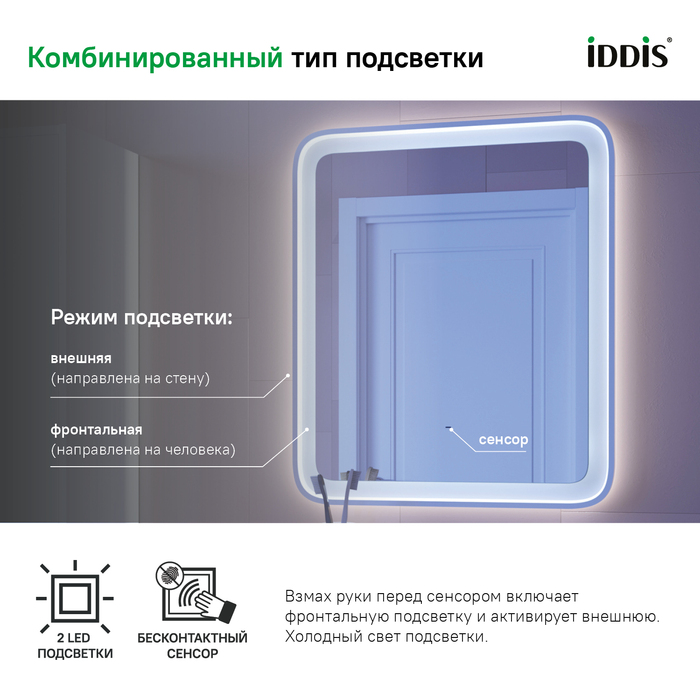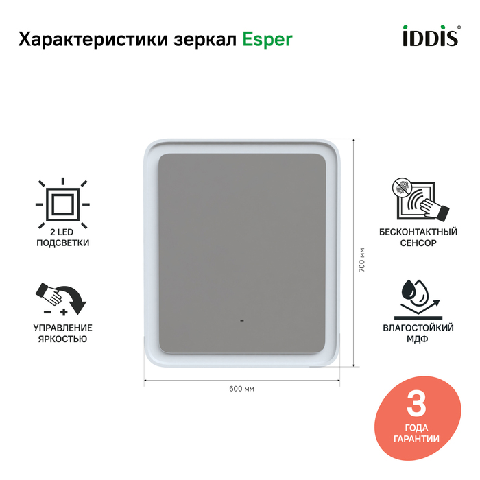 • Рама зеркала IDDIS® изготовлена из влагостойкого МДФ и покрыта пленкой. Благодаря этому зеркало устойчиво к влажной среде, а значит — прослужит долго и сохранит свой первоначальный вид.