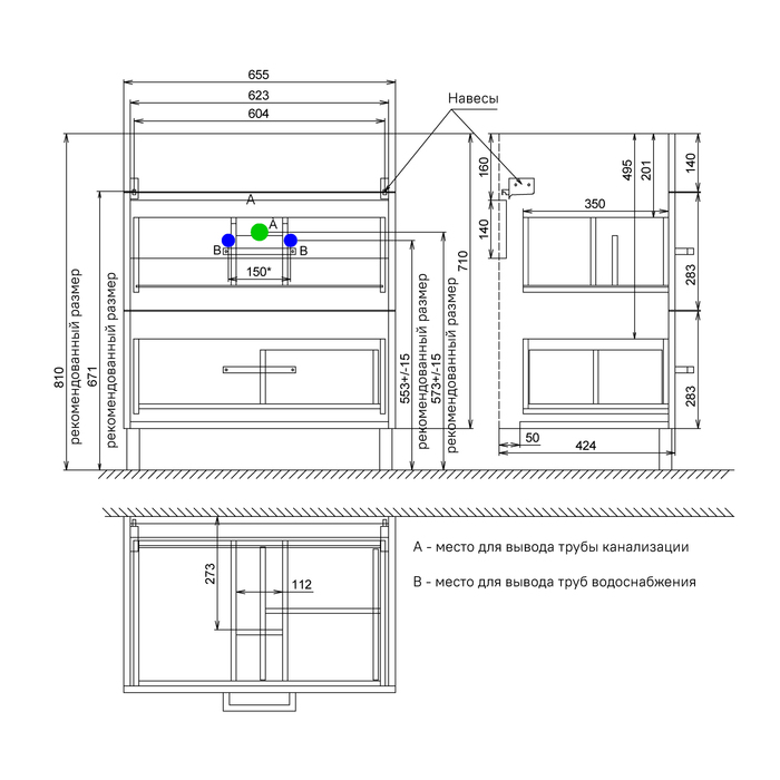 - Размер изделия, мм. 700*450*810