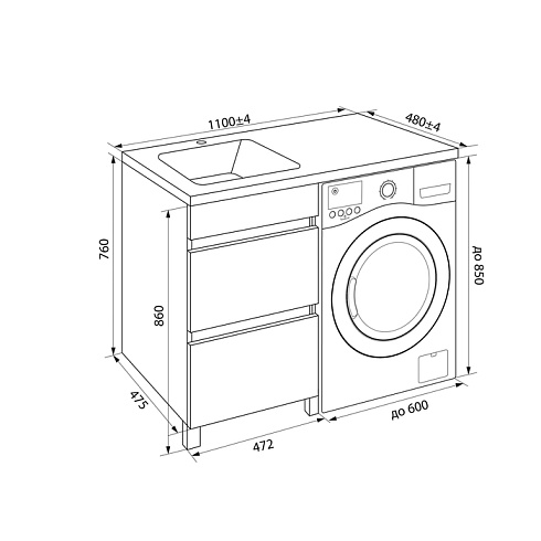 Тумба Optima Home – это удобное решение, чтобы организовать одновременно и зону умывания, и расположить стиральную машину. Модель подходит для установки стиральных машин с фронтальной загрузкой, справа от тумбы. В коллекции Optima Home также представлен вариант c расположением машинки слева от тумбы (арт. OPH11RBi95K). Два вместительных ящика обеспечивают удобное хранение ванных принадлежностей и аксессуаров, бытовой химии и принадлежностей для стирки. Высокие ножки позволяют скрыть коммуникации под тумбой и защитить ее от повреждения при затоплении. Тумбу дополняет умывальник (арт. 480110Li28) с длинным крылом и большой, глубокой чашей.