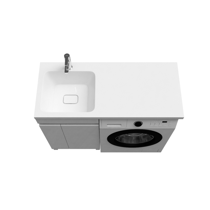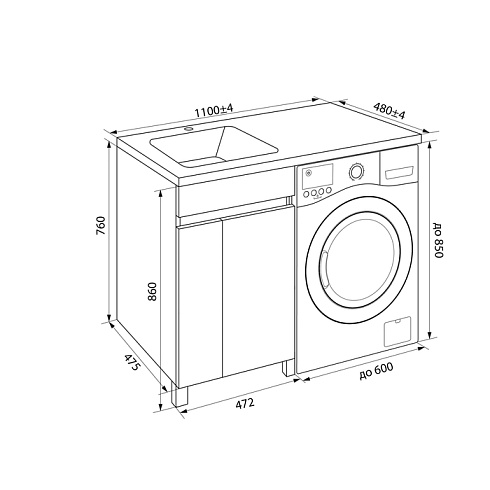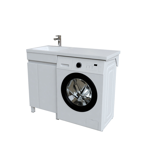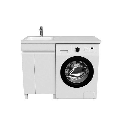 Тумба Optima Home – это удобное решение, чтобы организовать одновременно и зону умывания, и расположить стиральную машину. Модель подходит для установки стиральных машин с фронтальной загрузкой, справа от тумбы. В коллекции Optima Home также представлен вариант c расположением машинки слева от тумбы (арт. OPH11RDi95K). За ассиметричными распашными дверками расположена вместительная зона хранения для бытовой химии и принадлежностей для стирки. Высокие ножки позволяют скрыть коммуникации под тумбой и защитить ее от повреждения при затоплении. Тумбу дополняет умывальник (арт. 480110Li28) с длинным крылом и большой, глубокой чашей.
