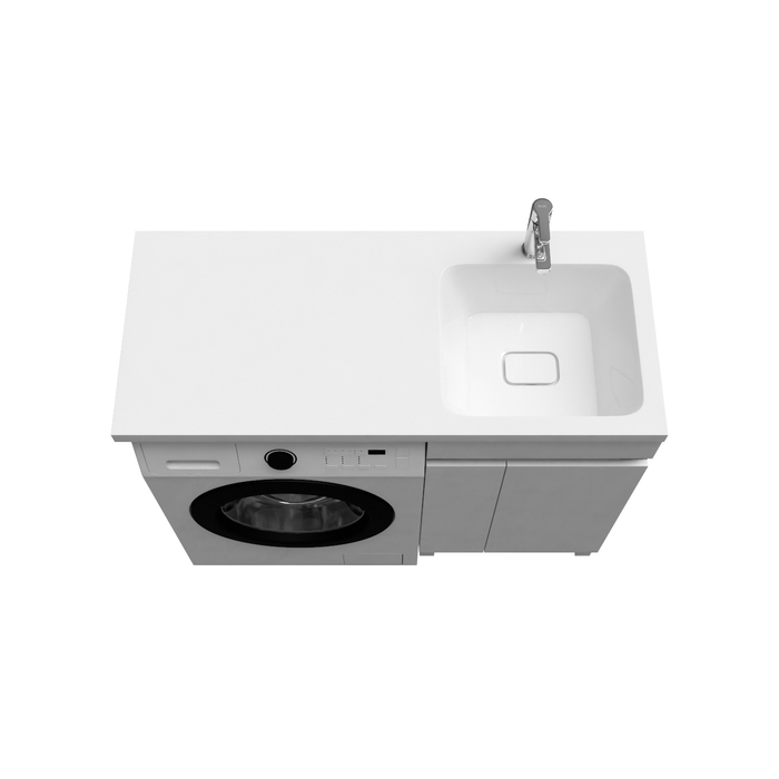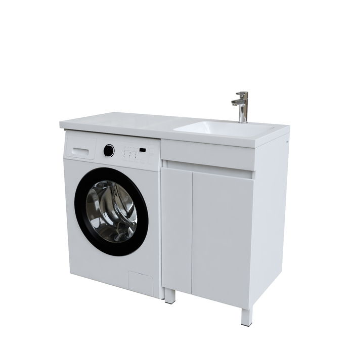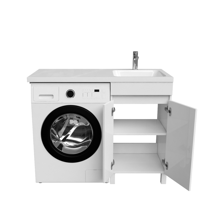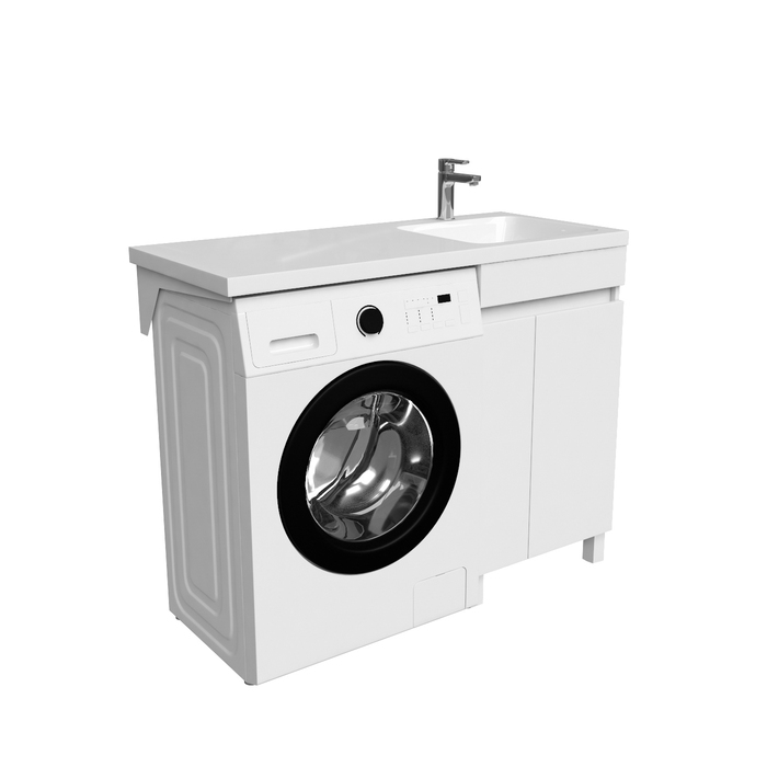 Тумба Optima Home – это удобное решение, чтобы организовать одновременно и зону умывания, и расположить стиральную машину. Модель подходит для установки стиральных машин с фронтальной загрузкой, слева от тумбы. В коллекции Optima Home также представлен вариант c расположением машинки справа от тумбы (арт. OPH11LDi95K). За ассиметричными распашными дверками расположена вместительная зона хранения для бытовой химии и принадлежностей для стирки. Высокие ножки позволяют скрыть коммуникации под тумбой и защитить ее от повреждения при затоплении. Тумбу дополняет умывальник (арт. 480110Ri28) с длинным крылом и большой, глубокой чашей.