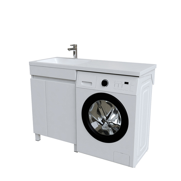 Тумба Optima Home – это удобное решение, чтобы организовать одновременно и зону умывания, и расположить стиральную машину. Модель подходит для установки стиральных машин с фронтальной загрузкой, справа от тумбы. В коллекции Optima Home также представлен вариант c расположением машинки слева от тумбы (арт. OPH12RDi95K). За ассиметричными распашными дверками расположена вместительная зона хранения для бытовой химии и принадлежностей для стирки. Высокие ножки позволяют скрыть коммуникации под тумбой и защитить ее от повреждения при затоплении. Тумбу дополняет умывальник (арт. 480120Li28) с длинным крылом и большой, глубокой чашей.