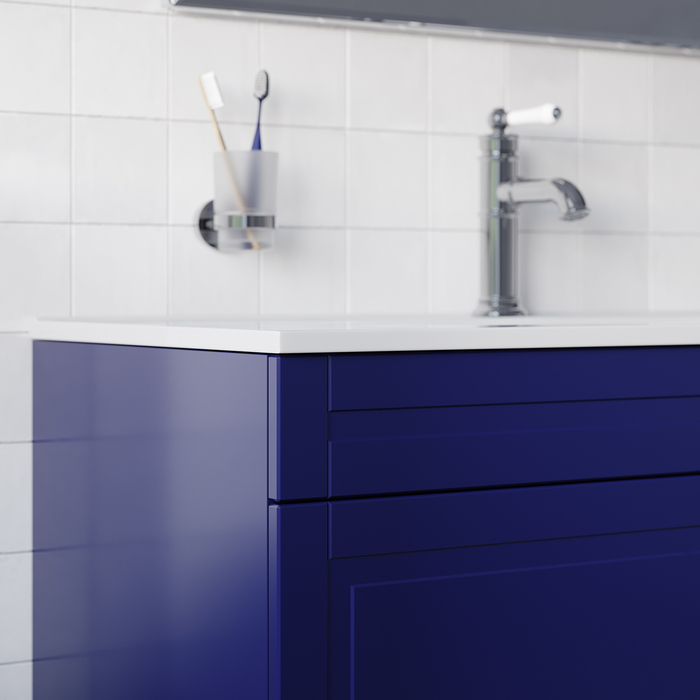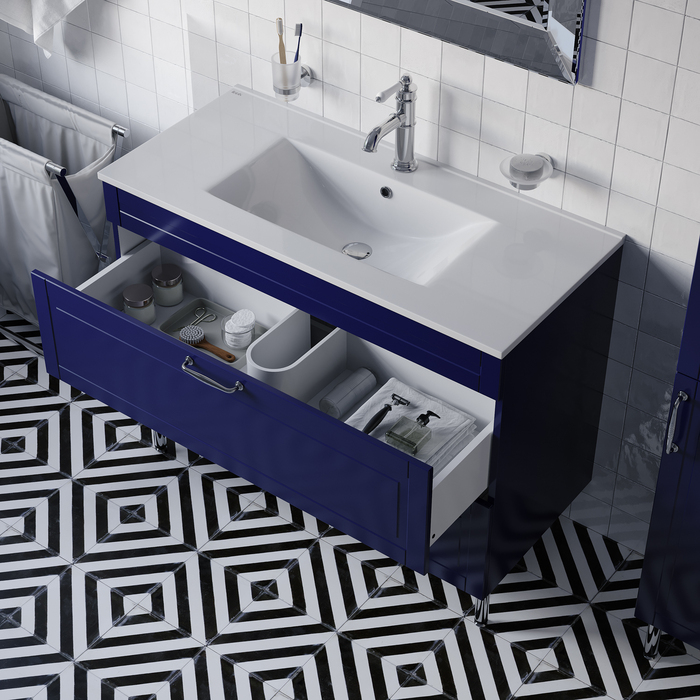 Вместительная напольная тумба Oxford в красивом синем оттенке – модное сочетание классического стиля и стиля ретро. Она органично впишется в интерьер благодаря элегантному фрезерованному фасаду и узнаваемому дизайну. В комплекте плоский эргономичный умывальник.