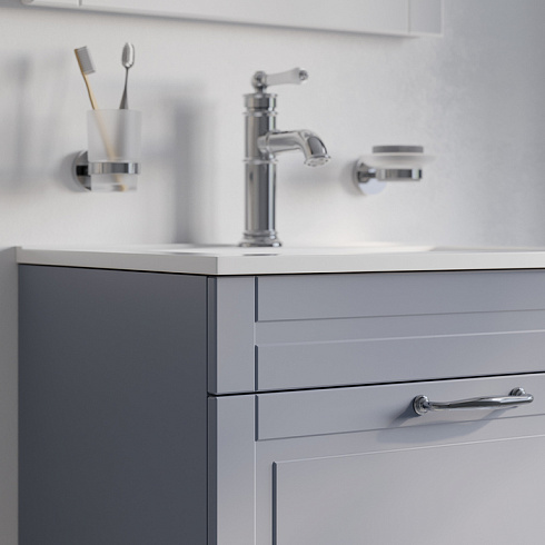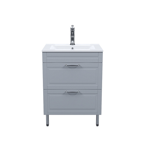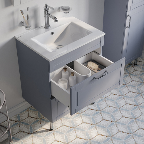 Компактная напольная тумба Oxford изысканного светло-серого цвета – модное сочетание классического стиля и стиля ретро. Она органично впишется в интерьер благодаря элегантному фрезерованному фасаду и узнаваемому дизайну. В комплекте плоский эргономичный умывальник.