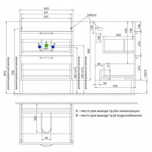 • Два просторных выдвижных ящика закрываются плавно и бесшумно благодаря высококачественным скрытым направляющим с доводчиками немецкого производства.