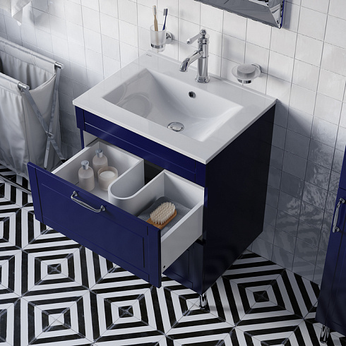 Компактная напольная тумба Oxford в красивом синем оттенке – модное сочетание классического стиля и стиля ретро. Она органично впишется в интерьер благодаря элегантному фрезерованному фасаду и узнаваемому дизайну. В комплекте плоский эргономичный умывальник.