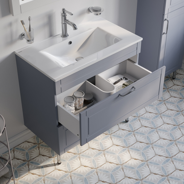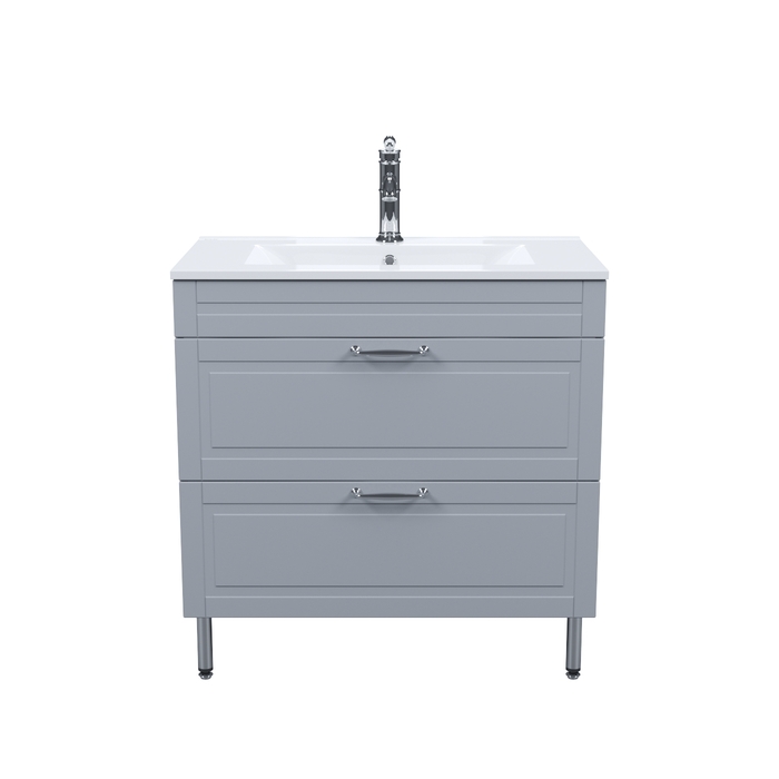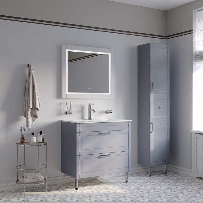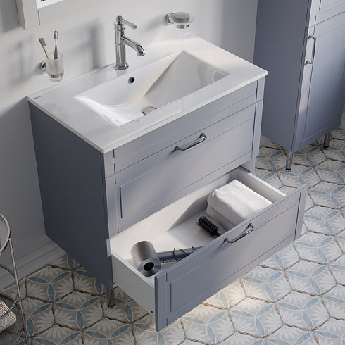 Напольная тумба Oxford изысканного светло-серого цвета – модное сочетание классического стиля и стиля ретро. Она органично впишется в интерьер благодаря элегантному фрезерованному фасаду и узнаваемому дизайну. В комплекте плоский эргономичный умывальник.