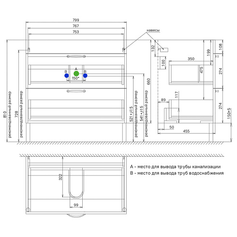 • Два просторных выдвижных ящика закрываются плавно и бесшумно благодаря высококачественным скрытым направляющим с доводчиками немецкого производства.