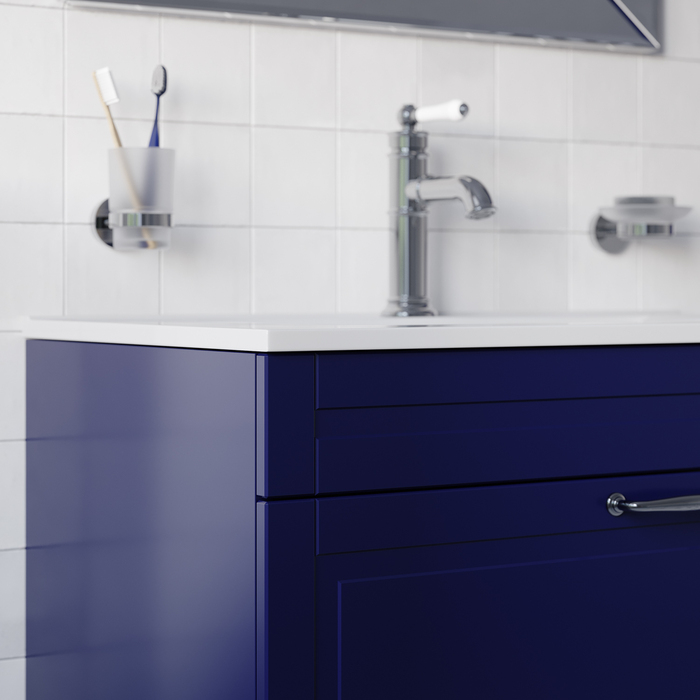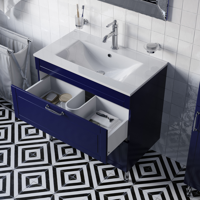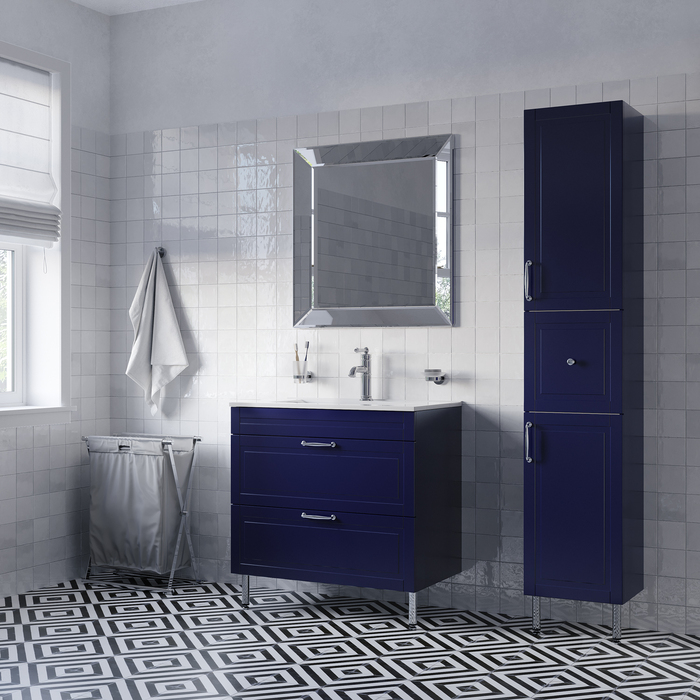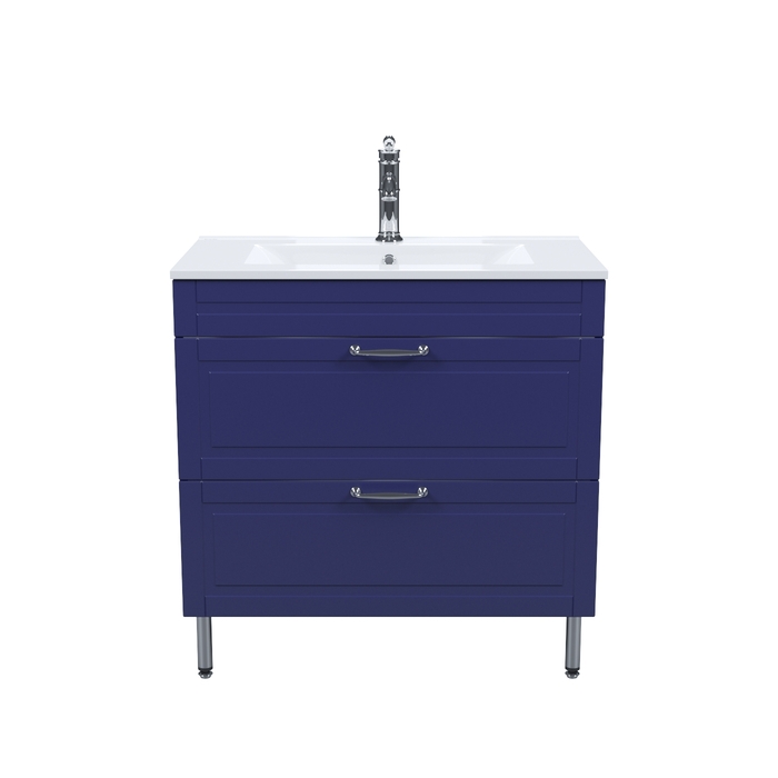 Напольная тумба Oxford в красивом синем оттенке – модное сочетание классического стиля и стиля ретро. Она органично впишется в интерьер благодаря элегантному фрезерованному фасаду и узнаваемому дизайну. В комплекте плоский эргономичный умывальник.