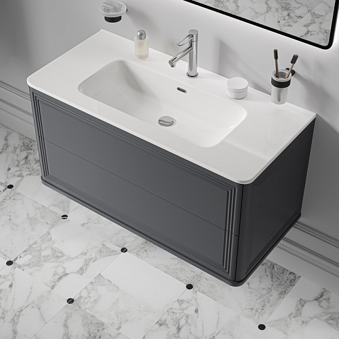 Вместительная подвесная тумба Oxford Neo с умывальником и выдвижными ящиками в элегантном стиле нео-классика с изящной фрезеровкой на фасадах и торцах. Идеально дополнит современные и классические интерьеры и станет настоящим украшением ванной. При желании тумбу можно сделать напольной – ножки высотой 30 см продаются отдельно в трёх цветах (белый, чёрный и светлый бук).