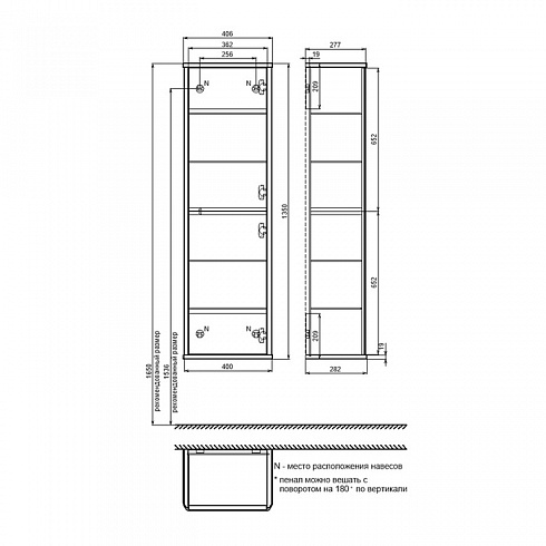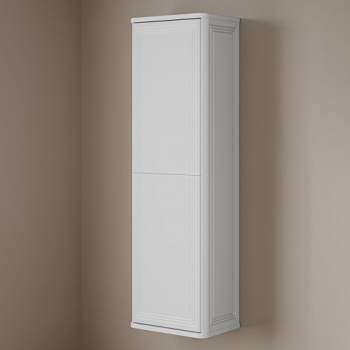 Подвесной пенал для ванной комнаты Oxford Neo в элегантном стиле нео-классика с изящной фрезеровкой на фасадах и торцах. Универсальная ориентация: пенал можно подвесить так, чтобы дверки открывались в удобную вам сторону (пенал можно перевернуть на 180 градусов, при этом перевешивать дверцы не нужно). При желании пенал можно сделать напольным – ножки высотой 30 см продаются отдельно в трёх цветах (белый, чёрный и светлый бук).