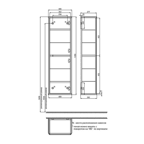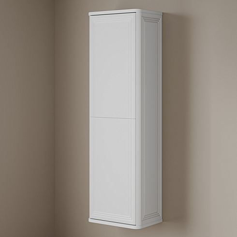 Подвесной пенал для ванной комнаты Oxford Neo в элегантном стиле нео-классика с изящной фрезеровкой на фасадах и торцах. Универсальная ориентация: пенал можно подвесить так, чтобы дверки открывались в удобную вам сторону (пенал можно перевернуть на 180 градусов, при этом перевешивать дверцы не нужно). При желании пенал можно сделать напольным – ножки высотой 30 см продаются отдельно в трёх цветах (белый, чёрный и светлый бук).