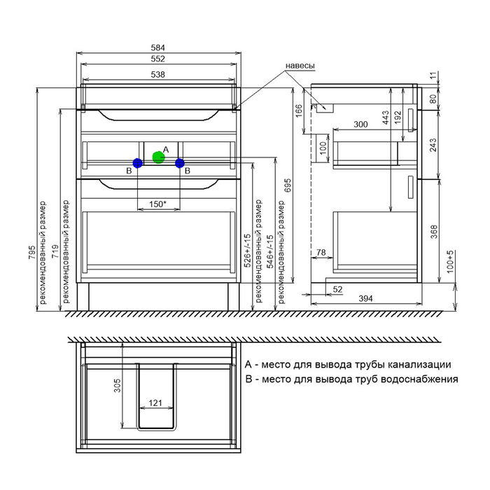 Пластиковая защита сифона внутри ящиков увеличивает долговечность и влагостойкость тумбы.