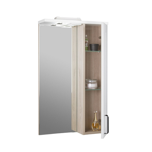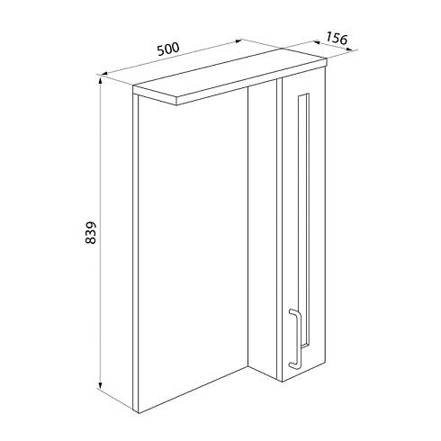 Шкаф-зеркало для ванной. Материал: ДСП. Размеры: 156х500х839 мм (ДхШхВ). Одна распашная дверца. Встроенная подсветка. Упаковка: картон, пленка, пенопластовые уголки.