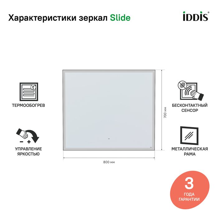 • Гарантия на зеркало IDDIS® – 3 года.