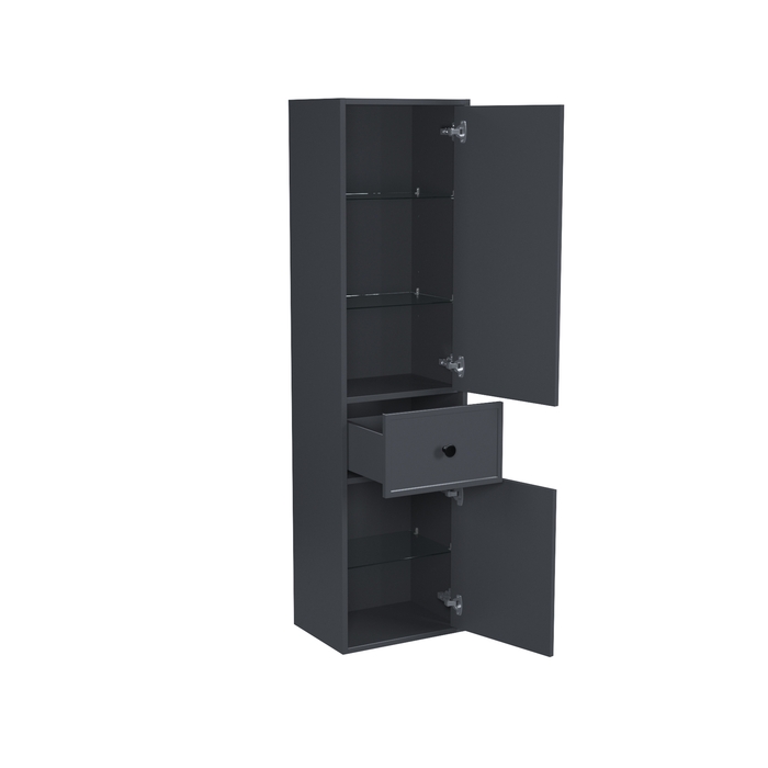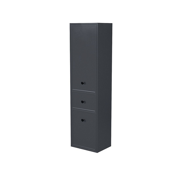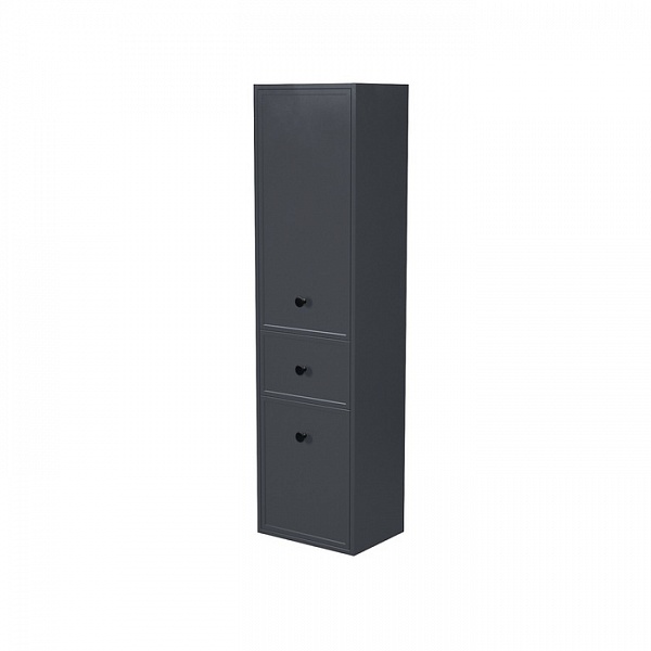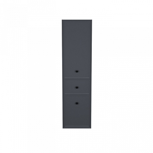 Подвесной пенал Torr трендового темно-серого цвета сочетает в себе узнаваемый стиль и практичность популярного скандинавского дизайна. Четкие формы пенала, фасады с декоративной филенкой, круглые ручки смотрятся гармонично и впишутся в любой современный интерьер.