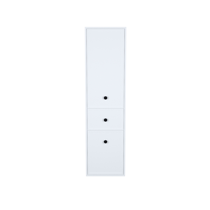 Подвесной пенал Torr универсального молочно-белого цвета сочетает в себе узнаваемый стиль и практичность популярного скандинавского дизайна. Четкие формы пенала, фасады с декоративной филенкой, круглые ручки смотрятся гармонично и впишутся в любой современный интерьер.