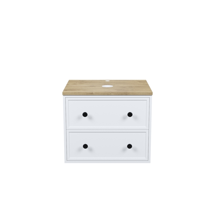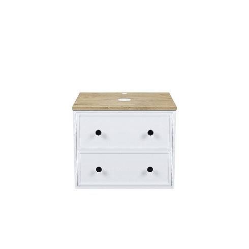 Компактная подвесная тумба Torr классического молочно-белого цвета со столешницей из МДФ в оттенке дуба верона. Сочетает в себе узнаваемый стиль и практичность популярного скандинавского дизайна. Ее четкие формы, теплый цвет дерева, фасады с декоративной филенкой, круглые ручки смотрятся гармонично и впишутся в любой современный интерьер. Подойдет любой накладной умывальник, покупается отдельно.