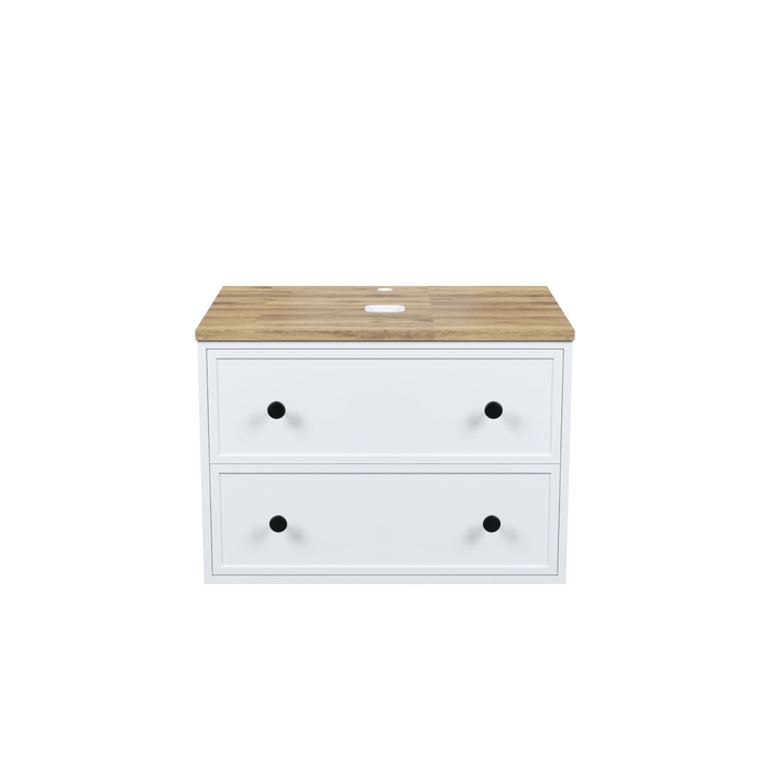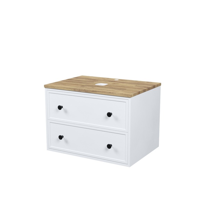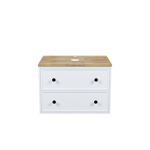 Компактная подвесная тумба Torr классического молочно-белого цвета со столешницей из клееного натурального дуба. Сочетает в себе узнаваемый стиль и практичность популярного скандинавского дизайна. Ее четкие формы, теплый цвет дерева, фасады с декоративной филенкой, круглые ручки смотрятся гармонично и впишутся в любой современный интерьер. Подойдет любой накладной умывальник, покупается отдельно.