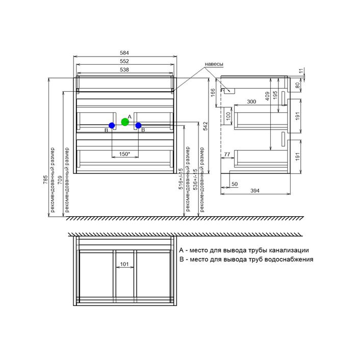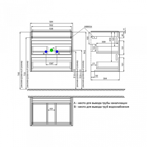 Материал фасада – МДФ с покрытием ПВХ-плёнкой, материал боковин – влагостойкий ЛДСП. Такое качественное исполнение обеспечит долгий срок службы мебели во влажном помещении ванной (при соблюдении рекомендаций по уходу).