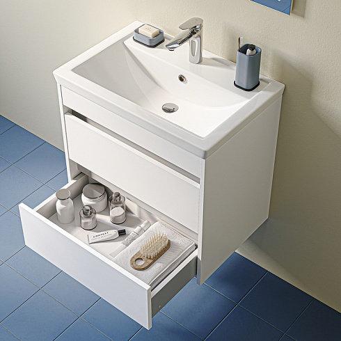 Вместительная подвесная тумба для ванной Zodiac X с умывальником и двумя выдвижными ящиками – новая версия коллекции-бестселлера Zodiac, которую мы обновили согласно актуальным требованиям дизайна и функционала. Универсальный стиль идеально впишется в любой интерьер.