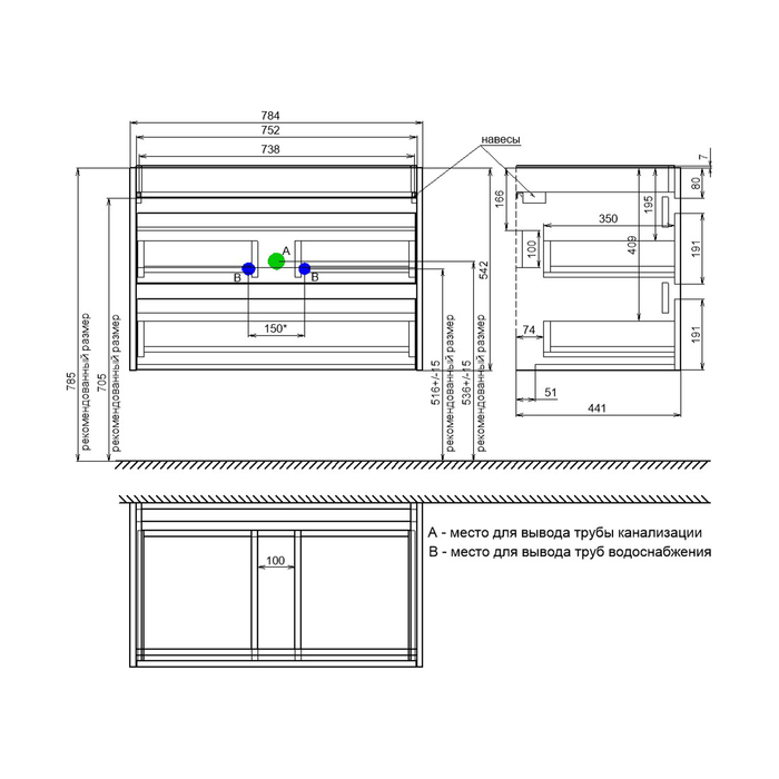 Материал фасада – МДФ с покрытием ПВХ-плёнкой, материал боковин – влагостойкий ЛДСП. Такое качественное исполнение обеспечит долгий срок службы мебели во влажном помещении ванной (при соблюдении рекомендаций по уходу).