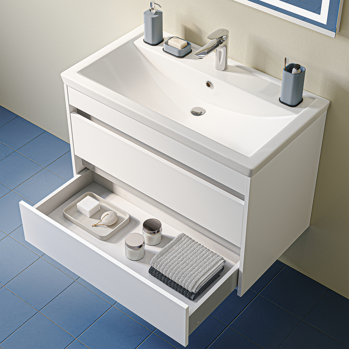 Вместительная подвесная тумба для ванной Zodiac X с умывальником и двумя выдвижными ящиками – новая версия коллекции-бестселлера Zodiac, которую мы обновили согласно актуальным требованиям дизайна и функционала. Универсальный стиль идеально впишется в любой интерьер.