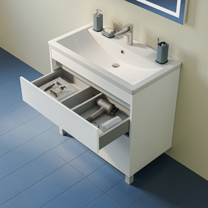 Вместительная напольная тумба для ванной Zodiac X с умывальником и двумя увеличенными выдвижными ящиками – новая версия коллекции-бестселлера Zodiac, которую мы обновили согласно актуальным требованиям дизайна и функционала. Универсальный стиль идеально впишется в любой интерьер.