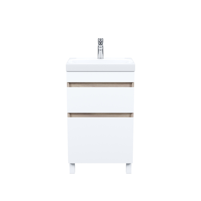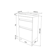 • В комплекте белые пластиковые ножки 100 мм и сифон, за счет чего тумба полностью готова к установке.