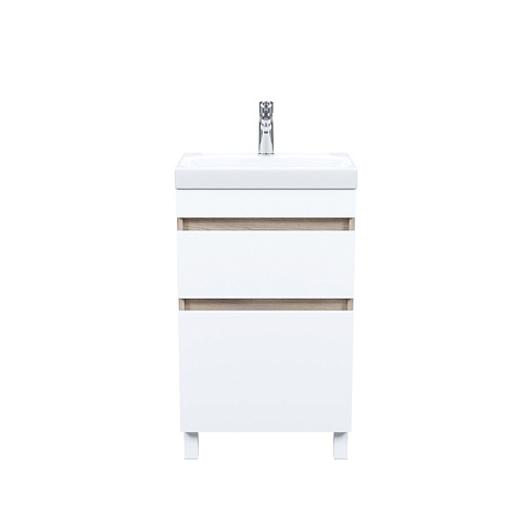 • В комплекте белые пластиковые ножки 100 мм и сифон, за счет чего тумба полностью готова к установке.