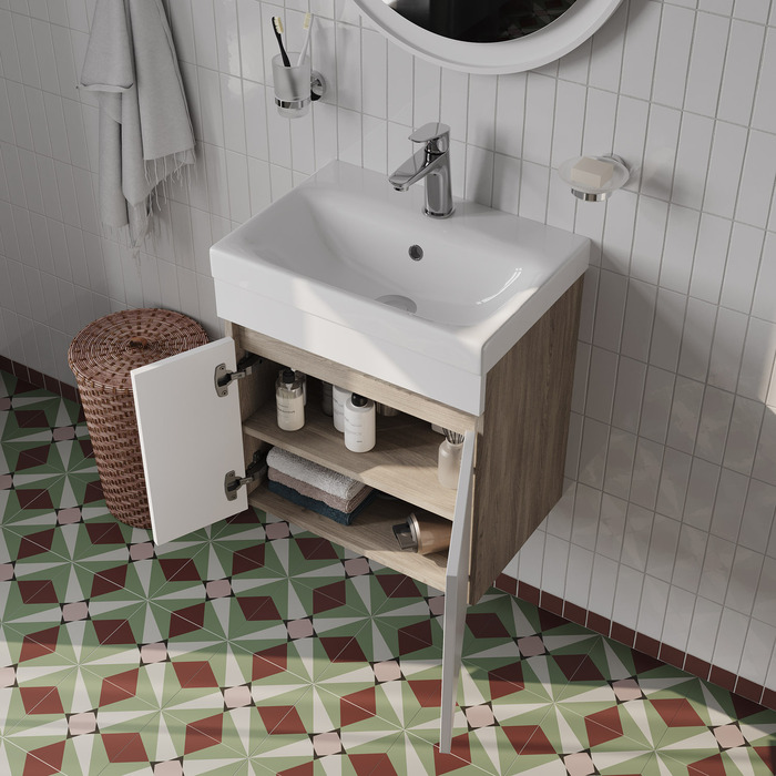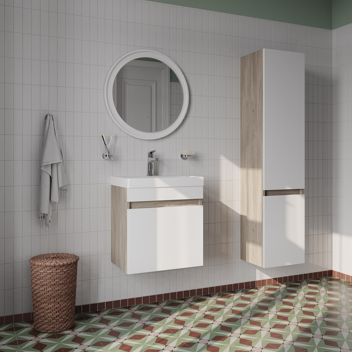 Компактная подвесная тумба для ванной Zodiac с распашными дверцами – удобство и практичность в сочетании с лаконичным скандинавским дизайном.