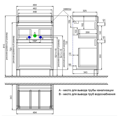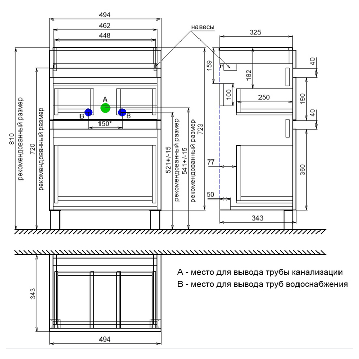 • В комплекте также белые пластиковые ножки высотой 100 мм и сифон, за счет чего тумба полностью готова к установке.