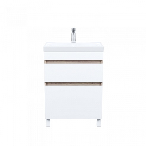 • В комплекте белые пластиковые ножки 100 мм и сифон, за счет чего тумба полностью готова к установке.